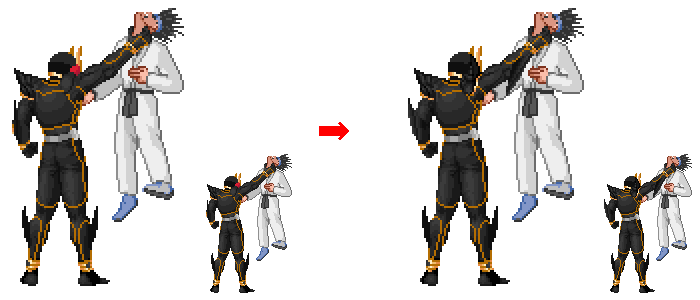 これはいい再現具合…!リアル頭身でもかわいいですなぁ。(格ゲー的にはひざを突いてしまうとしゃがみ攻撃を作るのが難しくなってしまう気もしますが)