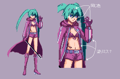 んー・・・髪の輪郭濃すぎたか、ドット足りなかったかですかね、これは修正できそう。