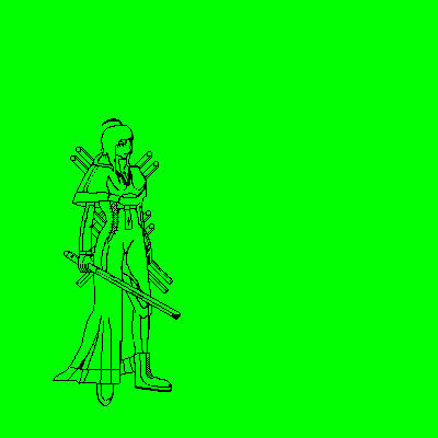 こうして反転してみると変なところいっぱいあるなぁ。武器の位置とか、奥の肩や足とか…。