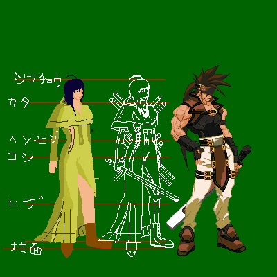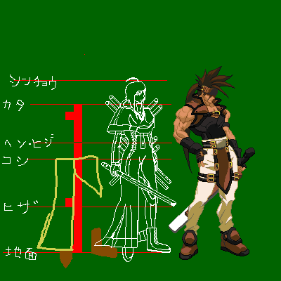 今回は、武器の描き方がよくわからなかったのでGG梅喧なんかを参考にしています。