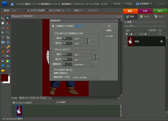 画像解像度を下げたファイルに戻り、