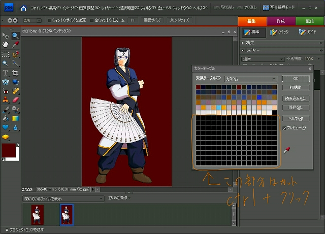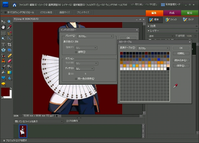 パレットデータを作る為、上書きをしないで違うファイルを作成。