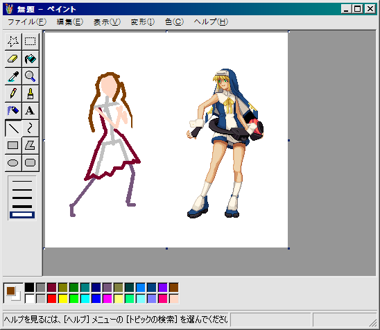 格ゲー準拠のサイズということで鰤のドットを某所よりコピーしてMSPaintに貼り付けます。