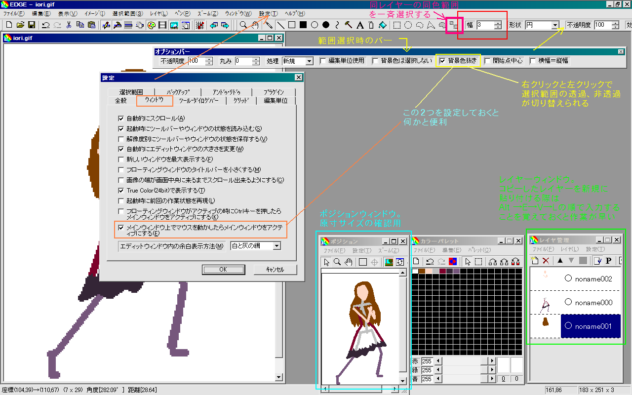 あくまでざっくり、大まかでいいです。EDGEだとインデックスカラーの制限があるから面倒なだけなんで、はい。