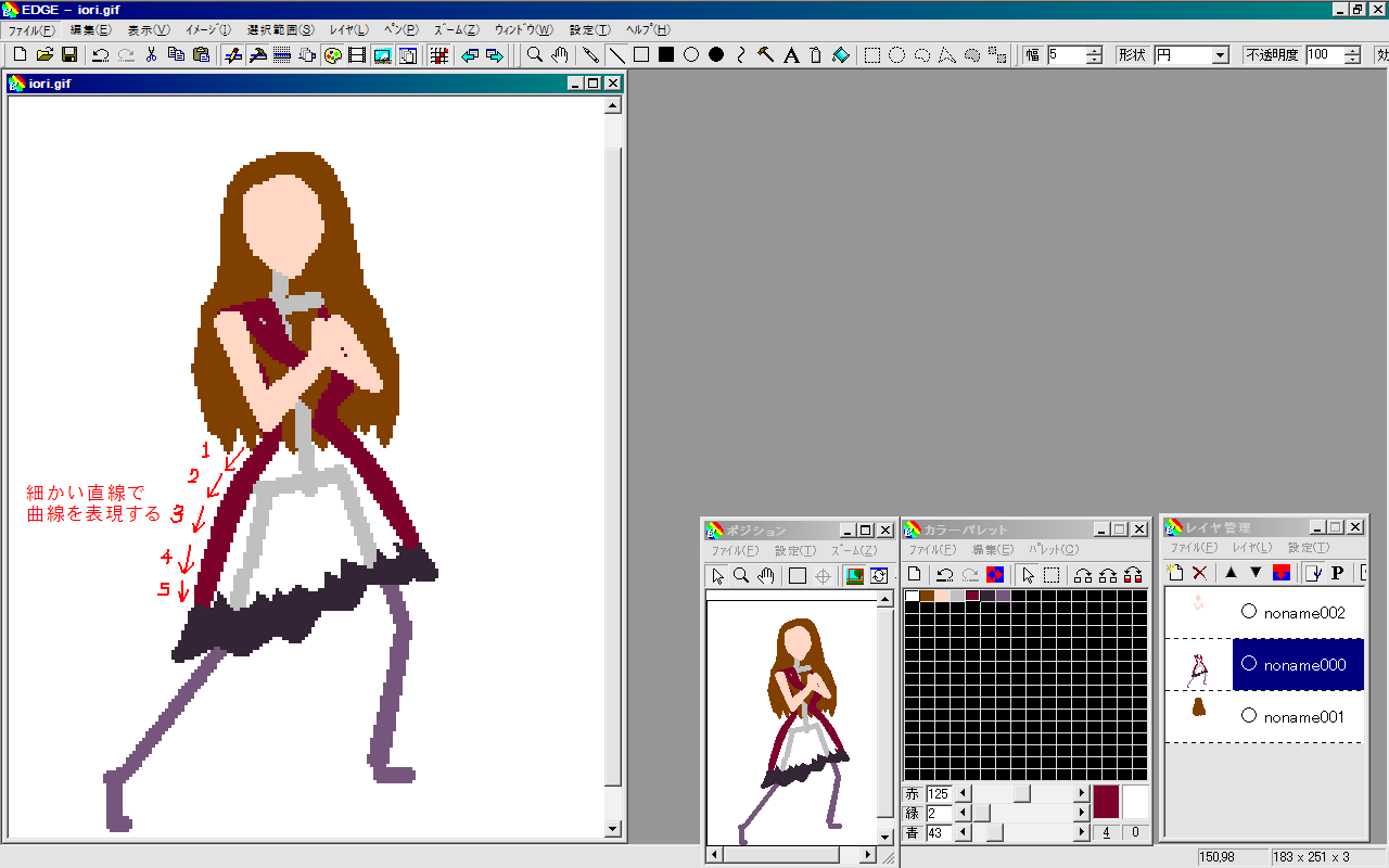 始めのうちは他のソフトの透過機能使って下絵のおおよその部分を直線でなぞるのもいいけれど、
