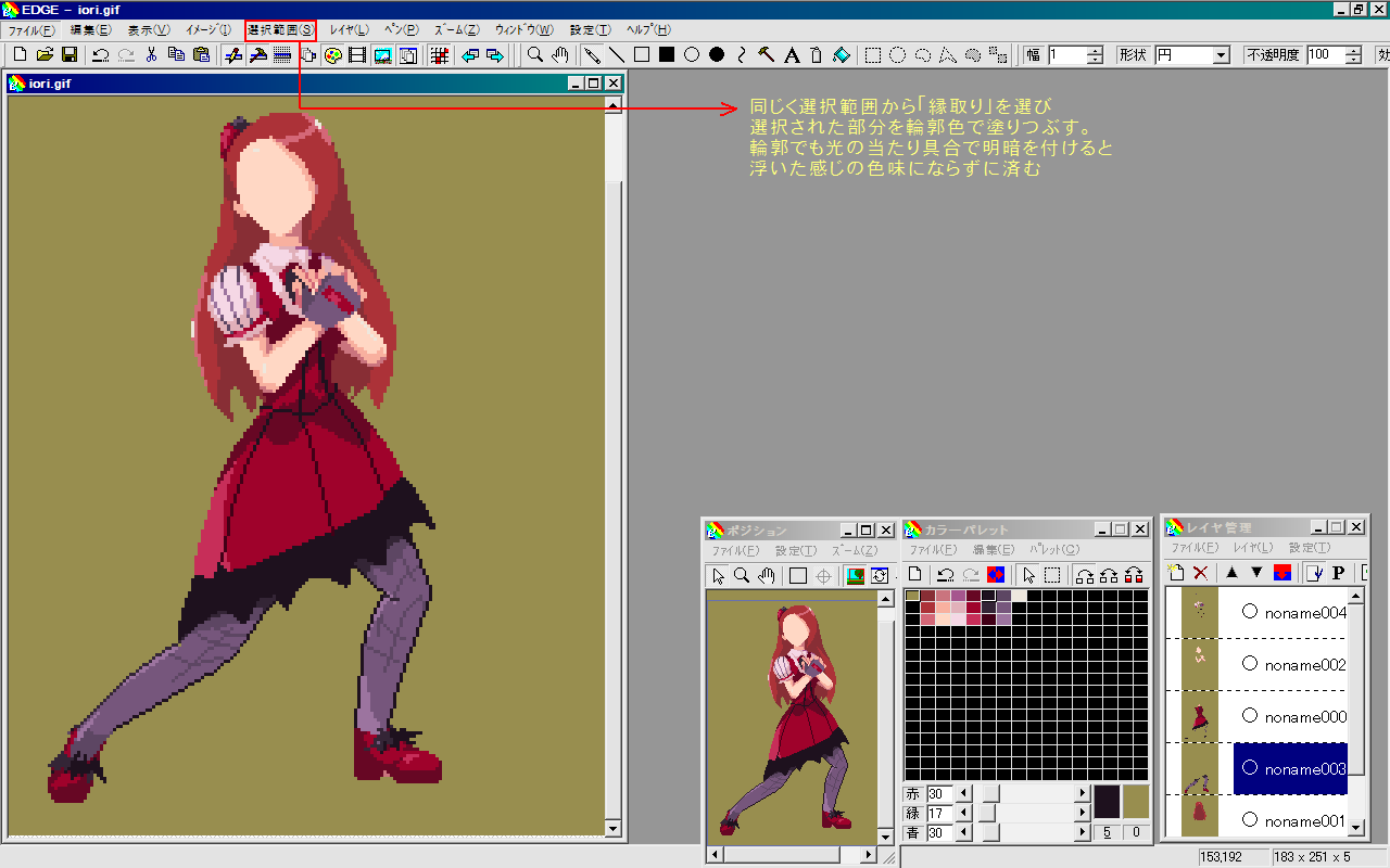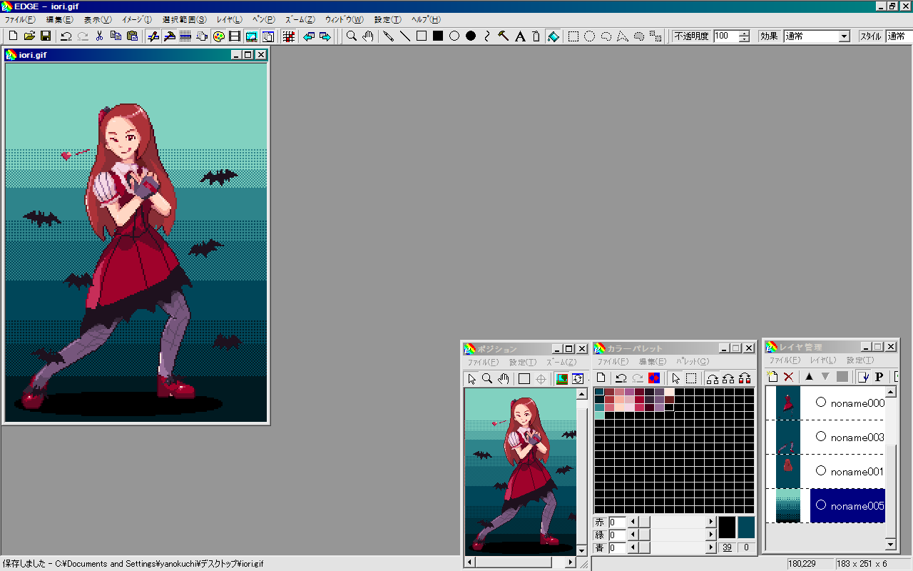 描き終えたら用済みな鰤を 大 切 断 して24bit bmp形式で保存します。そしてEDGEに取り込むために適当なgif形式で更に保存。