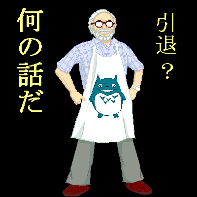 | 元はアニメーターだが自身で製作スタジオを立ち上げ、数々の名作アニメ映画を作りヒットさせてきた監督である。 その作品は多くが自然賛美をテーマとし、文明の発展により失われてゆくそれへの哀訴に満ちている事から、 ファンは親しみと揶揄をこめて彼を『 エコロ爺 』と呼んでいる。突然の引退宣言を発表し何処かへと消息を絶った。 近年、その作品はフィレンツェ国際映画祭金種子賞を受賞。愛称パヤザキ。 |