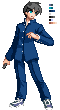 例として志貴のドットを見てみましょう。志貴のドットのうち制服の下と靴紐・靴底、小刀と髪色のパレットは同じものを使っています。